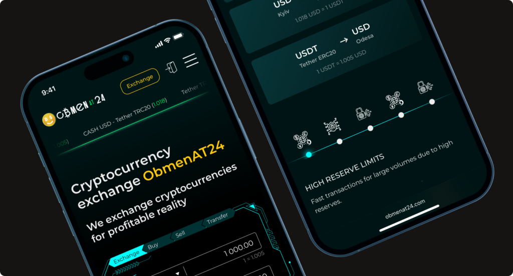 ObmenAT24 powstał jako alternatywa dla klasycznych giełd kryptowalutowych: prostsza, bardziej zrozumiała i szybsza. Tak powstała usługa, która oferuje korzystne warunki i umożliwia pracę z kryptowalutami i pieniędzmi elektronicznymi zarówno online, jak i offline, z gotówką – w Ukrainie i poza jej granicami.