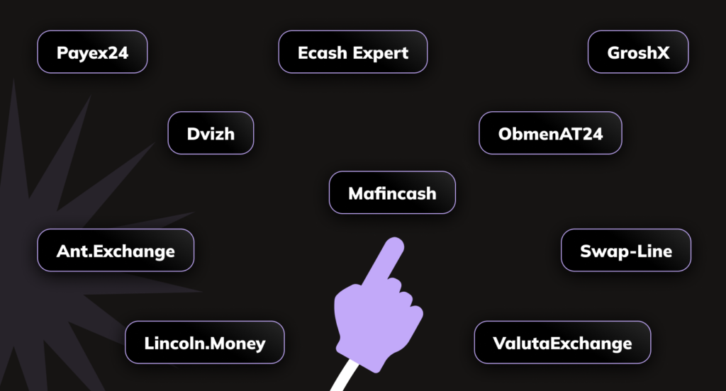 - Mafincash. Цей сервіс пропонує зручні умови для обміну та орієнтований на користувачів, яким важлива швидкість і доступ до різних напрямків. Підтримуються різні способи оплати, платформа дозволяє швидко провести операцію та отримати кошти у потрібній валюті. Зручний інтерфейс і зрозуміла структура роблять роботу з сервісом комфортною навіть для новачків.